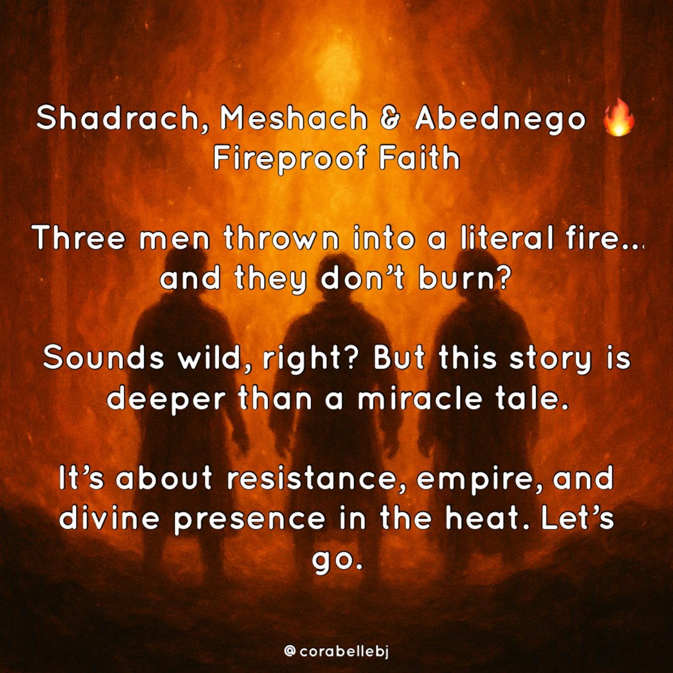 I was thinking about the story of Shadrach, Meshach, and Abednego the other day. That old Bible story used to fascinate me as a kid, and something about it always stuck with me. But now, as I’m diving deeper and deconstructing so much of what I was taught… this story is hitting me in an entirely new way.