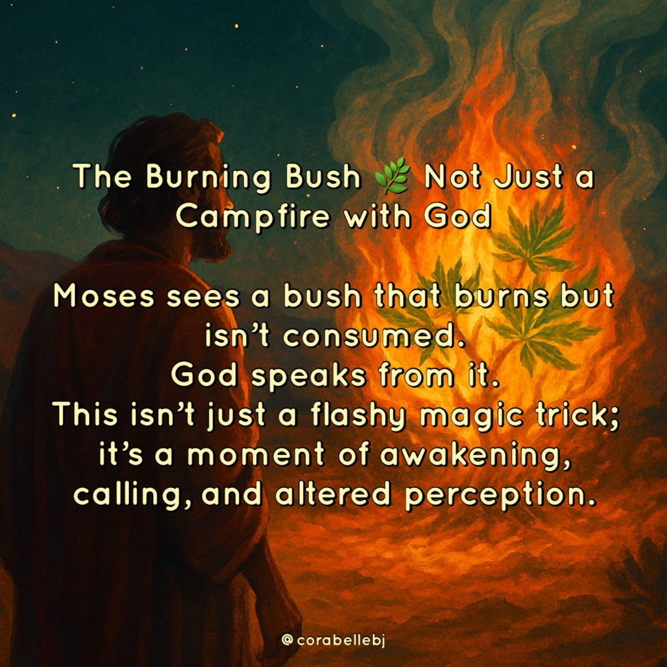 This wasn’t just a random shrub on fire. It was another divine mic drop, a flame that refused to burn out, saying, “Pay attention, I’m speaking.” Another sacred story wrapped in centuries of misinterpretation, but at its core? A reminder that the divine can set your soul ablaze without burning you out. And honestly… I think the world needs to hear this message right now 💜🔥🌿